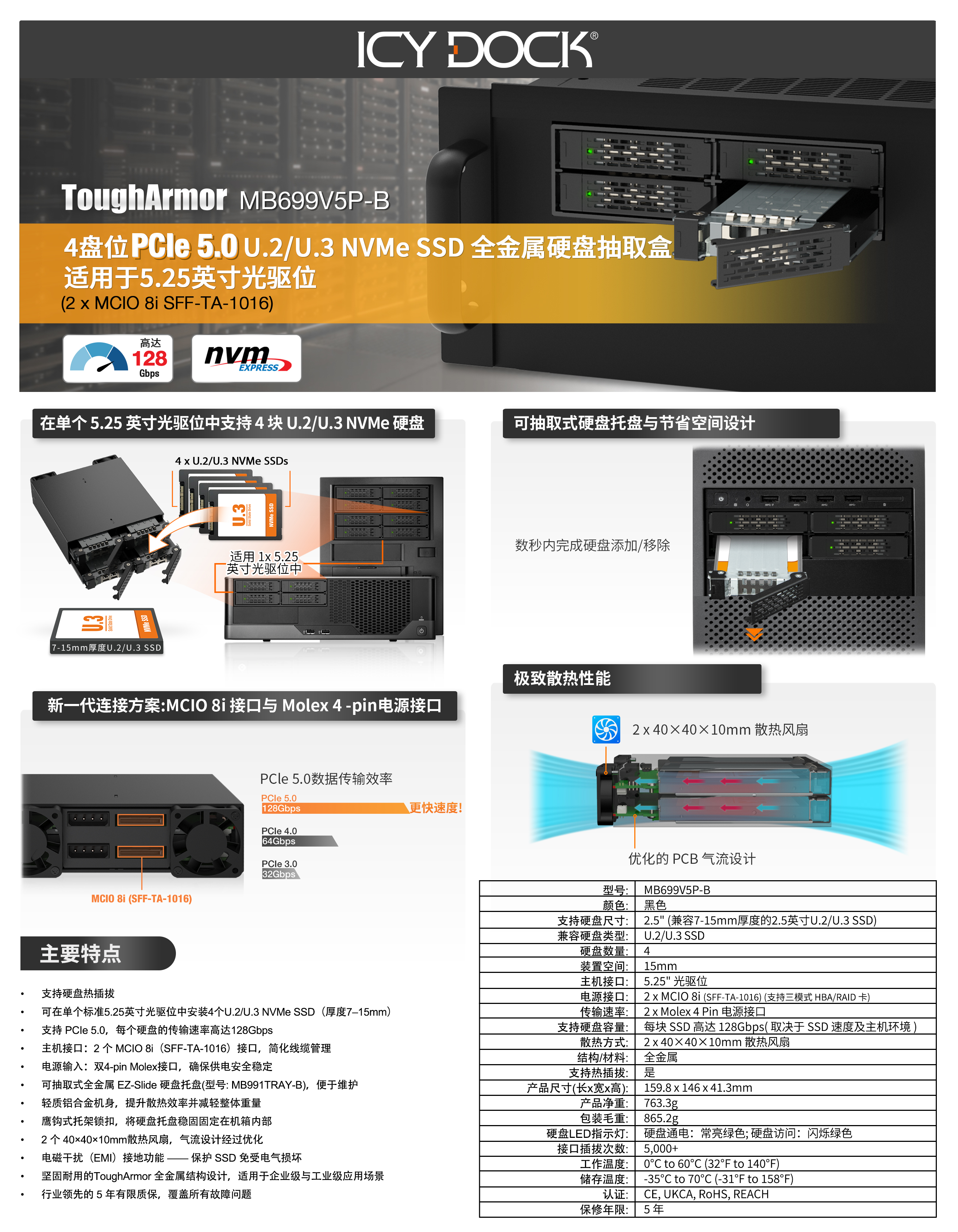 | • | 支持 PCIe 5.0,每个硬盘的传输速率高达128Gbps |