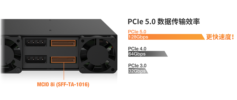 | • | 主机接口:2 个 MCIO 8i(SFF-TA-1016)接口,简化线缆管理 |