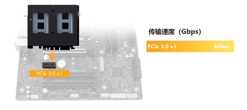 | • | 采用紧凑型 PCIe 3.0 x1 接口,传输速率高达 6Gbps |
