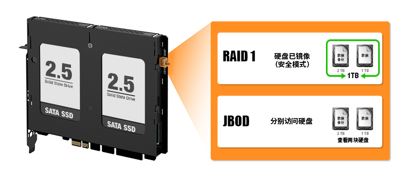 | • | 支持 RAID 1 模式,为关键任务环境提供数据冗余与高可靠性 |
