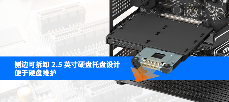 | • | 侧拉式可拆卸托盘设计,充分利用 PCIe 插槽空间并简化硬盘取用 |