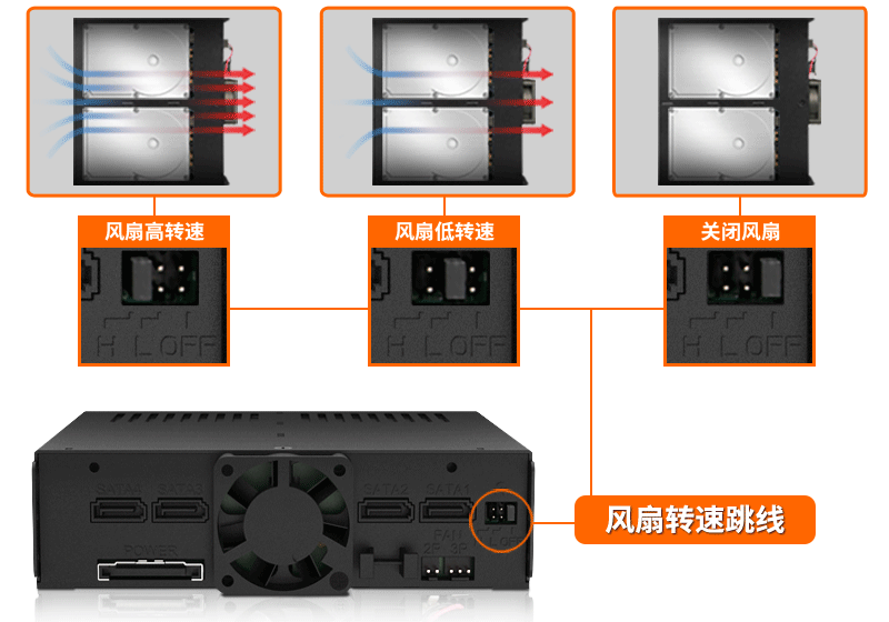 答:我们所使用的散热风扇已与硬盘盒进行过全面测试,以确保其能正常运行并支持风扇转速控制功能(仅限特定型号)。因此,为获得最佳使用效果,我们建议客户保留原装风扇。不过,我们理解原装风扇可能并非适用于所有使用场景,因此即便使用第三方风扇,我们仍会为产品提供保修服务。但是,如果是因第三方风扇对设备造成的损坏,则保修无效。