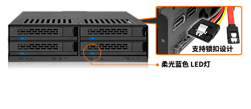 | 硬盘活动 LED 指示灯: | 硬盘通电:蓝灯常亮;硬盘读取:蓝灯闪烁 |