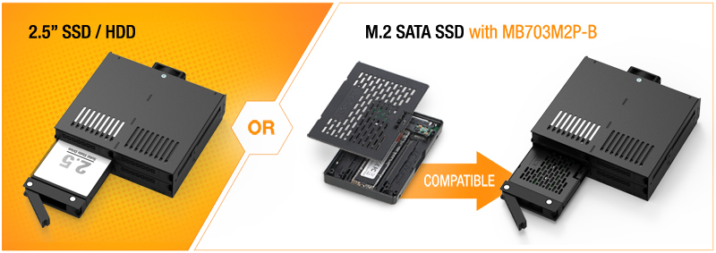 如果您希望在 ExpressCage MB324SP-1B 中使用 M.2 SATA SSD,可搭配我们的 EZConvert MB703M2P-B M.2 SSD 转 2.5 英寸 SATA硬盘适配器。该适配器配备免工具可调节固定装置,可稳固固定 M.2 硬盘。 想了解更多关于 EZConvert MB703M2P-B 的信息,请点击 此处。