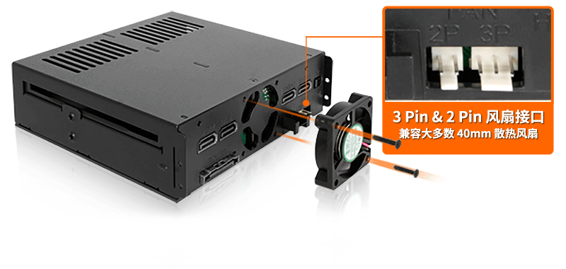 | • | 支持2-pin 和 3-pin fan 风扇接口,便于更换或升级风扇 |
