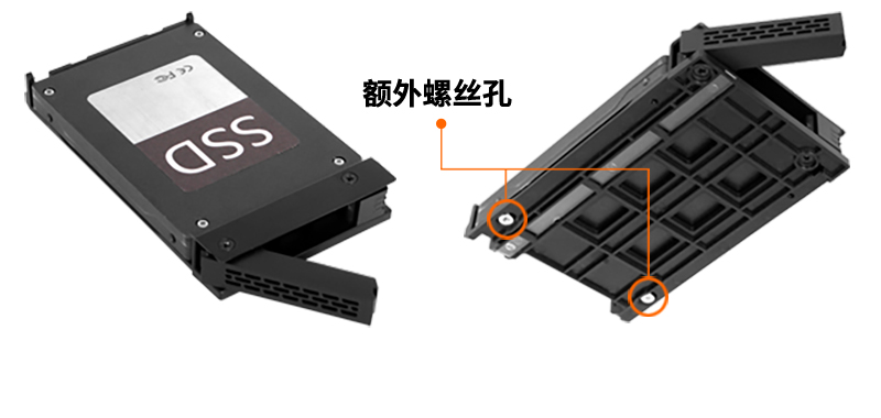 | • | 可选底部螺丝孔以增强硬盘固定稳定性 |