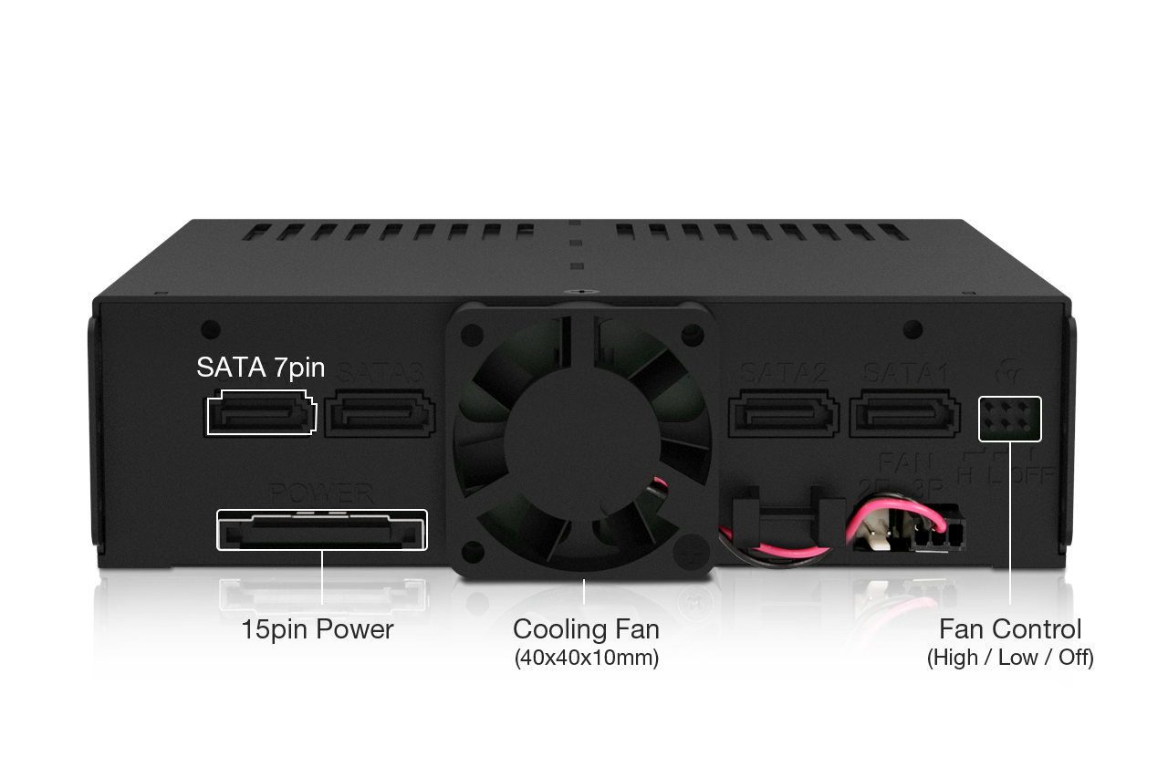 | • | 可自主更换的40mm 风扇,实现高效硬盘散热 |