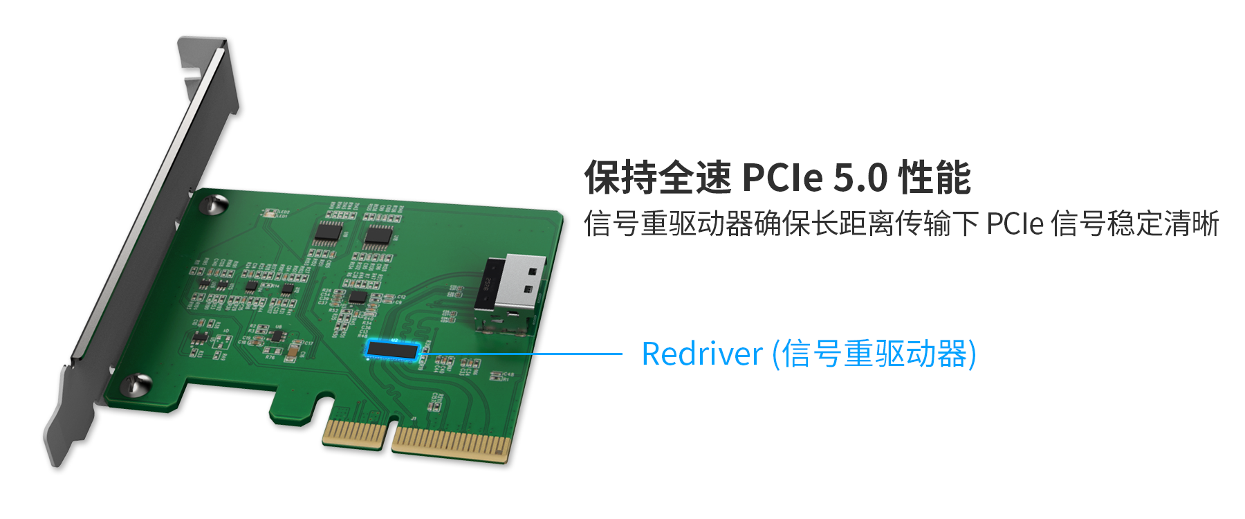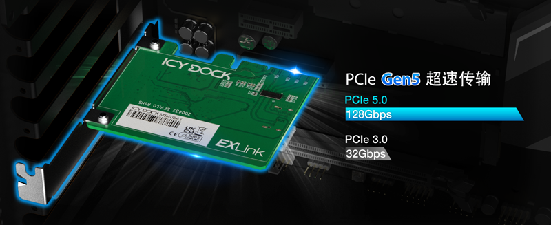 | • | 集成 PCIe 5.0 Redriver信号重驱动器芯片,延长信号传输距离 |