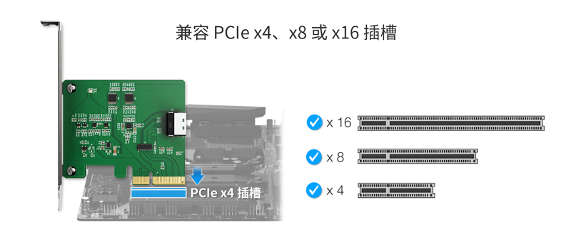 | 适用装置空间: | 支持主板上的x4/x8/x16 物理插槽 PCIe5.0/4.0/3.0/2.0 |