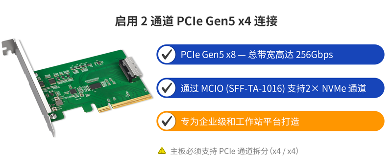 | 输出接口: | 1 x MCIO 8i (SFF-TA-1016) |