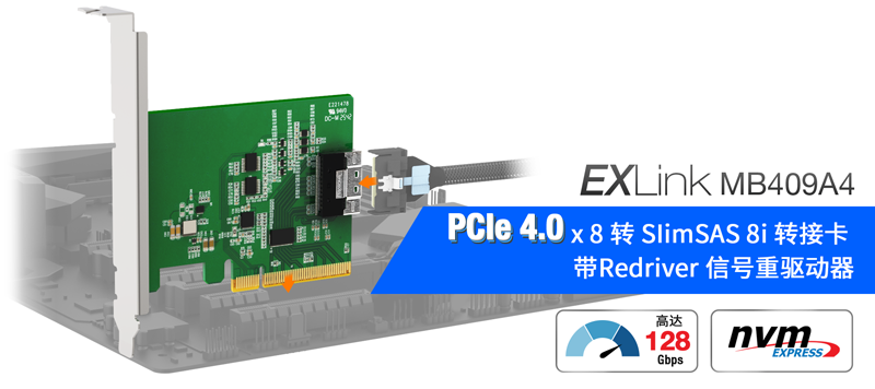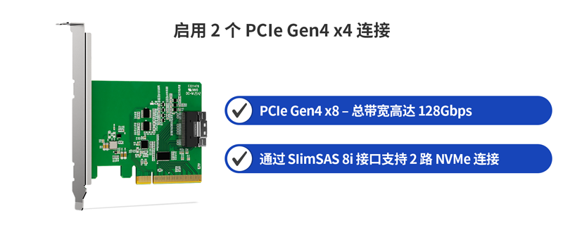 | • | SlimSAS 8i (SFF-8654) 接口,用于高速 NVMe信号传输 |