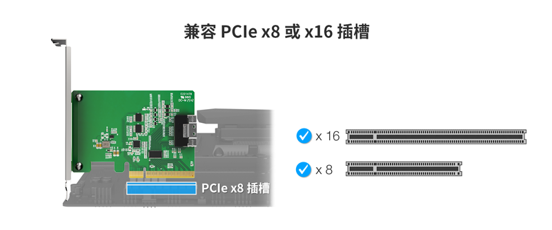 | 主机接口 : | 1 x PCIe x8 接口 |